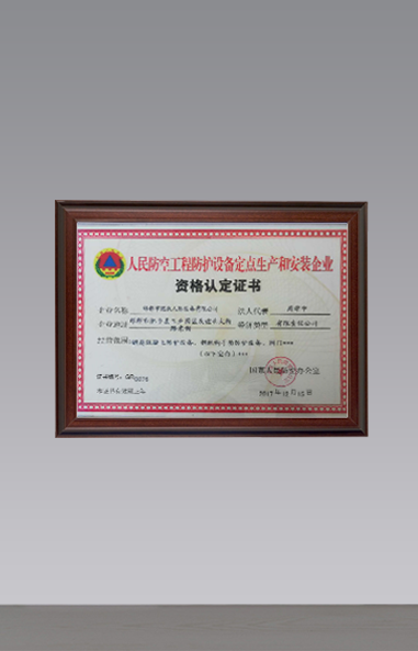 2017通過IS9100質(zhì)量管理認(rèn)證體系;獲得人民防空工程定點(diǎn)生產(chǎn)按照資質(zhì)。
